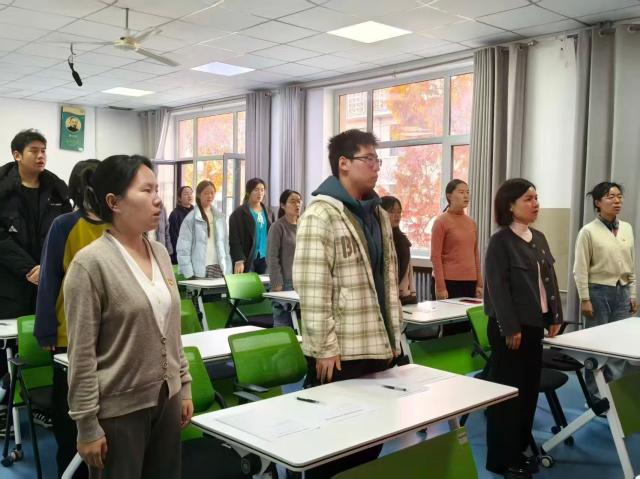 在仪式环节,正式党员为新接收的预备党员佩戴党员徽章,全体党员面向党旗肃立,高举右拳庄严宣誓。最后,相萌萌对新预备党员提出期望:要持续深化党的创新理论学习,在思想上政治上行动上同党中央保持高度一致;在学习工作中勇挑重担,严格遵守党纪校规,充分发挥先锋模范作用,树立新时代学生党员的良好形象。